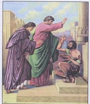 In the culture of the day it was a custom that beggars sat at the entrance of a temple or shrine as people attending would be more inclined to show practical generosity. The man was carried each day by his friends to the entrance of the temple known as the Beautiful gate.