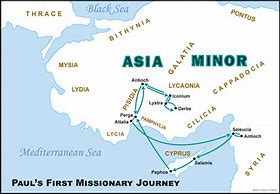 The group sailed to Cyprus from Seleucia and visited the local synagogues to share the ‘word of God’ with John assisting them. At one point (chapter 14) Paul was confronted by a magician called Bar Jesus who violently opposed him. Paul prayed for him and he became blind for a time. During this encounter a witnessing proconsul observed andbelieved! At this point Saul’s name significantly changed to Paul and was filled with the Holy Spirt. They continued their travels from Paphos to Perga in Pamphylia where John, for his own reason, returned to Jerusalem. They entered another synagogue at Pisidia Antioch which was a Roman colony in Galatia, which was part of their strategic planning.
