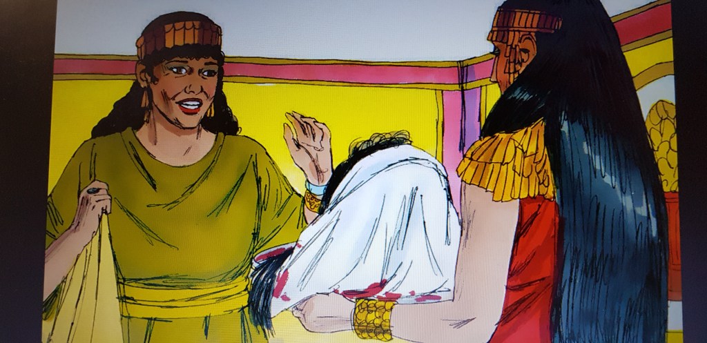 There were murmurs of shock around the great hall. I revelled in it. How could the king do anything but comply with my request? He felt uncomfortable, no doubt shocked at what I had asked for and no doubt regretted his flippant offer of ‘any’ reward. There was a pause in the atmosphere while my words were digested by the other guests. “What did she say? What does she want?” There was unbelief and murmurs of doubt that my request would be granted. Herod squirmed but his promise had been made in the presence of many and he would not, could not, lose face.