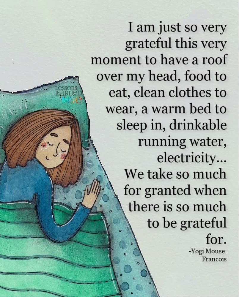 So when we’re having a moan about something going wrong or not being able to afford the latest gadget or other item we crave, let’s remind ourselves just how fortunate we are and count our blessings instead.